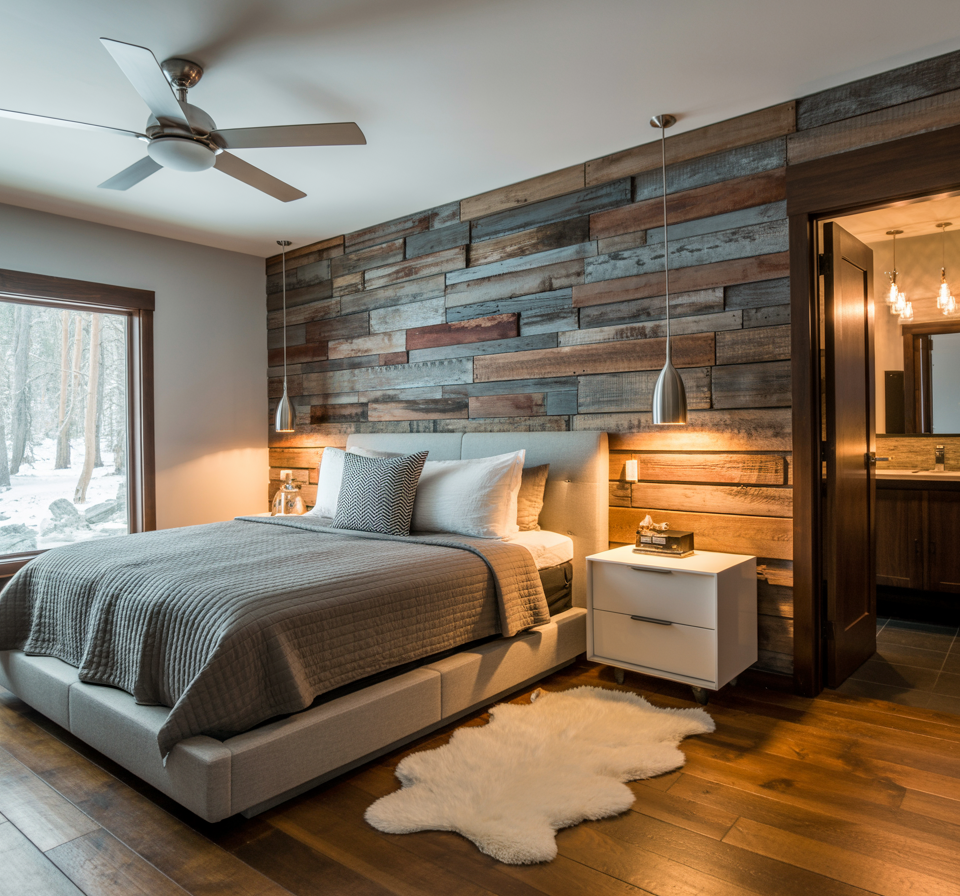 Reclaimed wood works beautifully with both modern and rustic interiors. To balance the raw look of the wood, pair it with modern décor like glass table lamps, clean white or beige bed linens, and sleek furniture. This creates a stunning mix of old and new, making your bedroom feel both cozy and stylish.