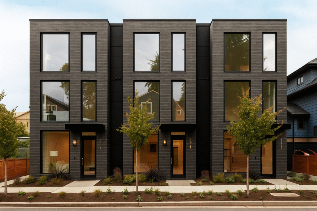 Townhouses are built in rows, with a uniform design across units. While they offer less privacy than a detached home, they provide more independence than apartments. Each unit has its own entrance, and in many cases, its own driveway or garage.