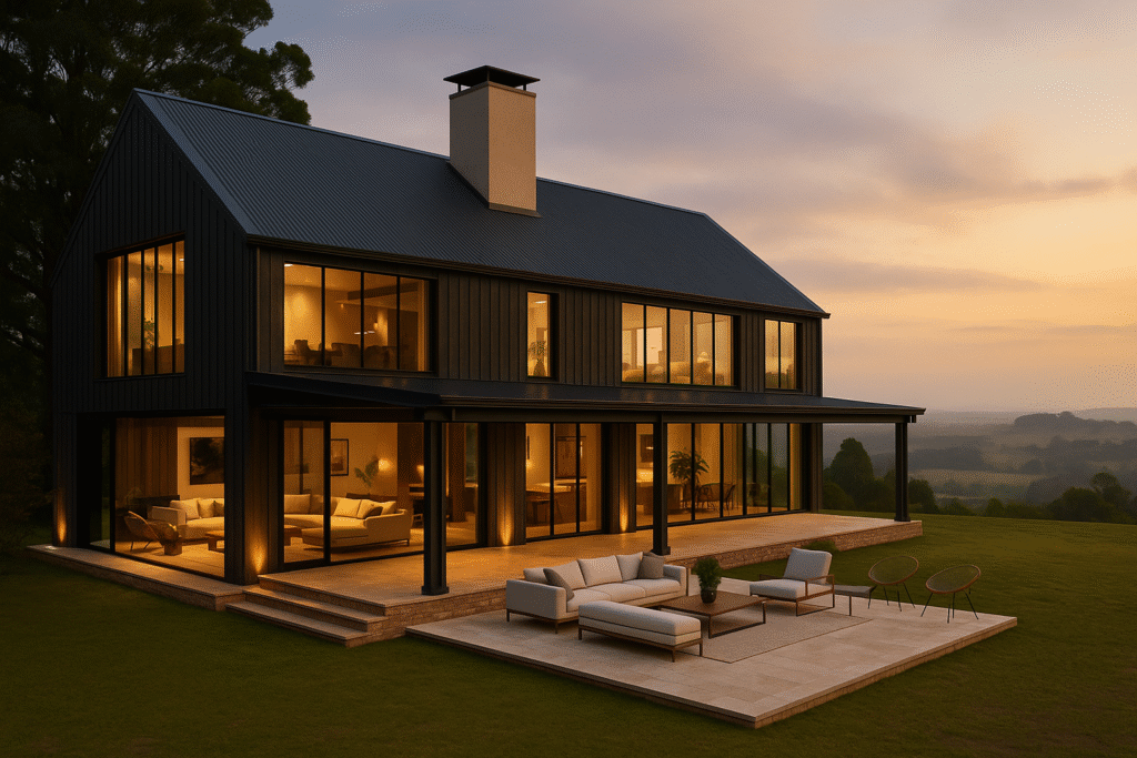Modern farmhouses, while inspired by tradition, are updated with contemporary elements like: