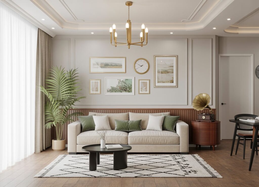 Multiple lighting sources—such as table lamps, sconces, and overhead fixtures—are layered to add depth and warmth. Carefully chosen décor pieces complete the look while ensuring the space stays uncluttered and harmonious.
