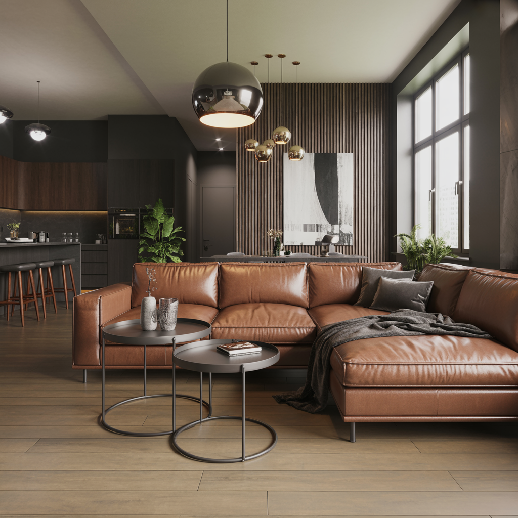 Furniture in industrial living rooms is built for durability. Leather sofas, metal coffee tables, and open shelving units form the backbone of the design. Pieces are often simple in form but made from strong materials that stand the test of time, adding to the rugged aesthetic.