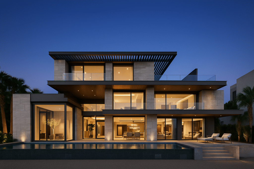 One of the most important aspects of modern villa design is the thoughtful selection of materials. Combining natural and modern textures helps create contrast and warmth — essential qualities in a luxury home.