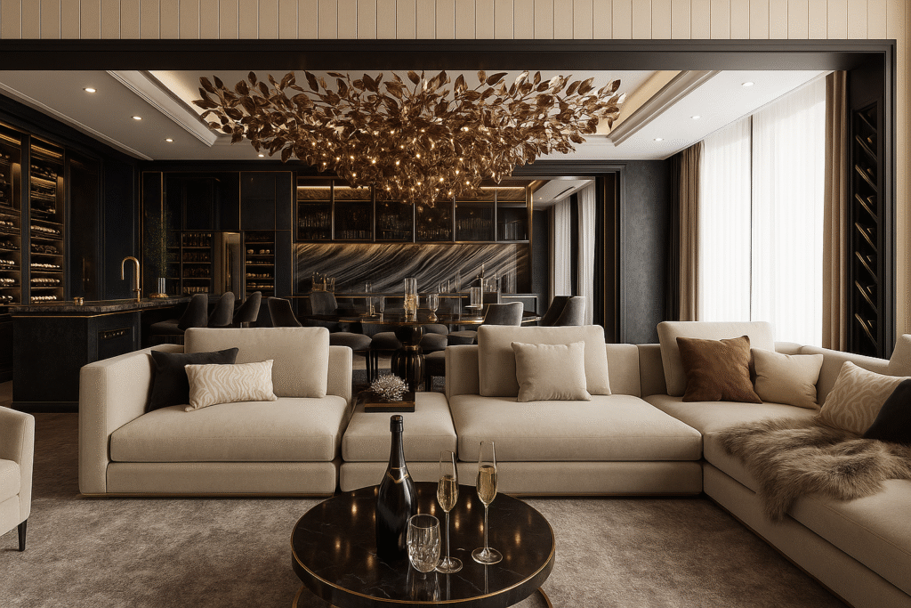 A thoughtfully designed villa living room should express both luxury and personality. The goal is to combine high-end aesthetics with warmth and comfort.