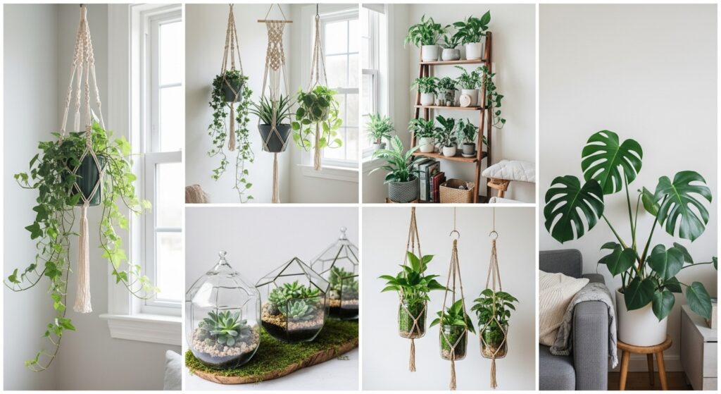 DIY Plant Corner: Arrange multiple plants on a ladder shelf or cluster them near a bright window for a lush effect.