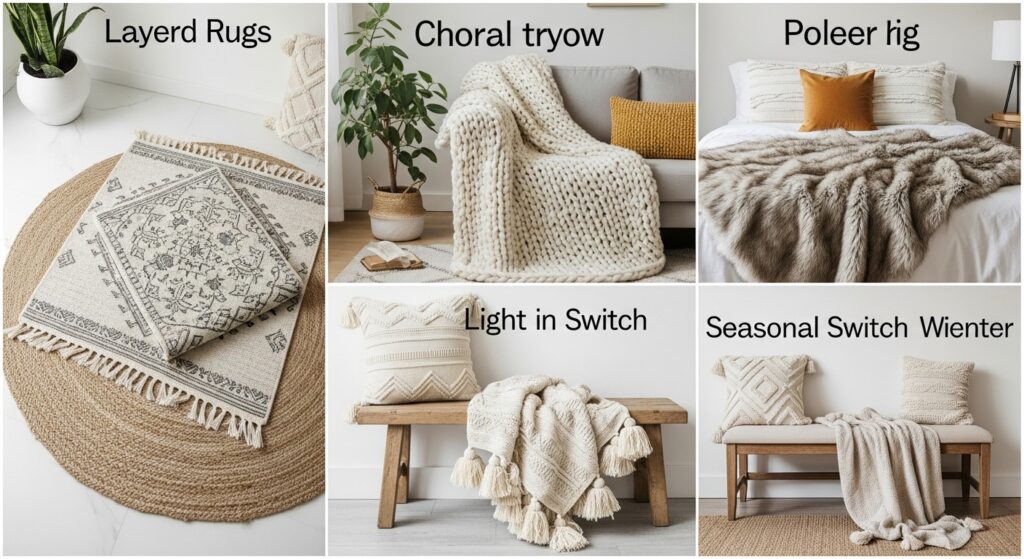 Textures are one of the easiest ways to make a space feel instantly cozy and visually dynamic. By layering rugs and throws, you create depth, warmth, and a designer-inspired look without breaking the bank.