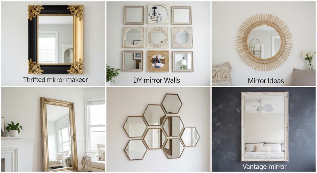 DIY Mirror Wall: Combine several small mirrors in a grid pattern for a modern, spacious look. This works especially well in hallways, living rooms, or small apartments.