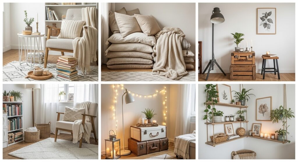 Layered Comfort: Use soft blankets, textured throws, and oversized pillows to make the corner extra inviting.